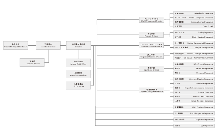 | March 2012 | Aiming to strengthen each business division, two business divisions were formed, i.e. Merchant Banking Division specialized in M As and Securities Business Division dealing with securities brokerage businesses. |